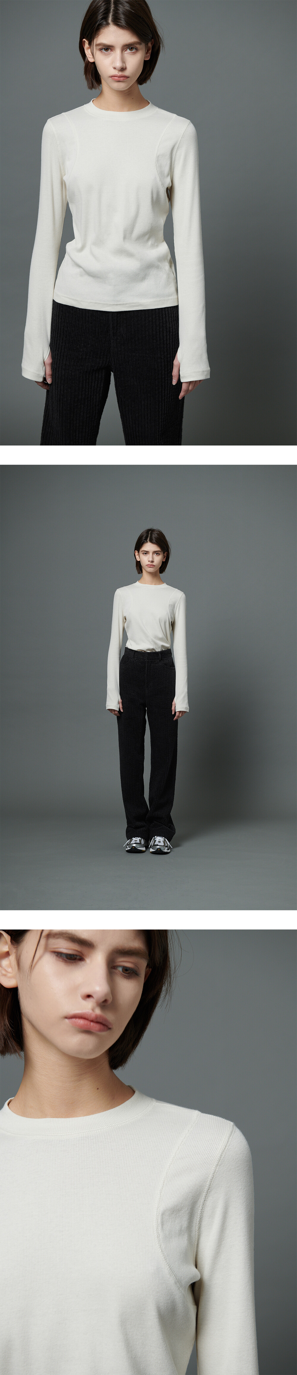 구조적인 절개선을 따라 놓여진 커버 스티치가 특징적인 티셔츠 입니다. 바디를 조이지 않고 체형에 맞게 유연하게 늘어나 편안하게 입을 수 있습니다.