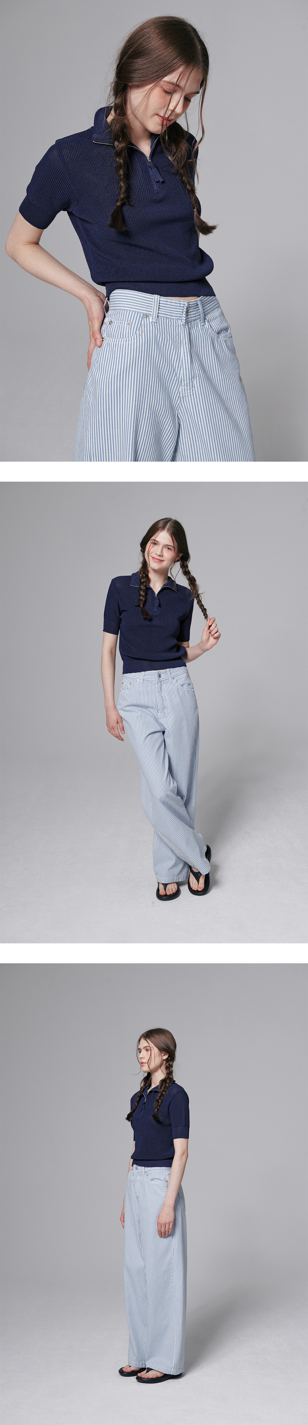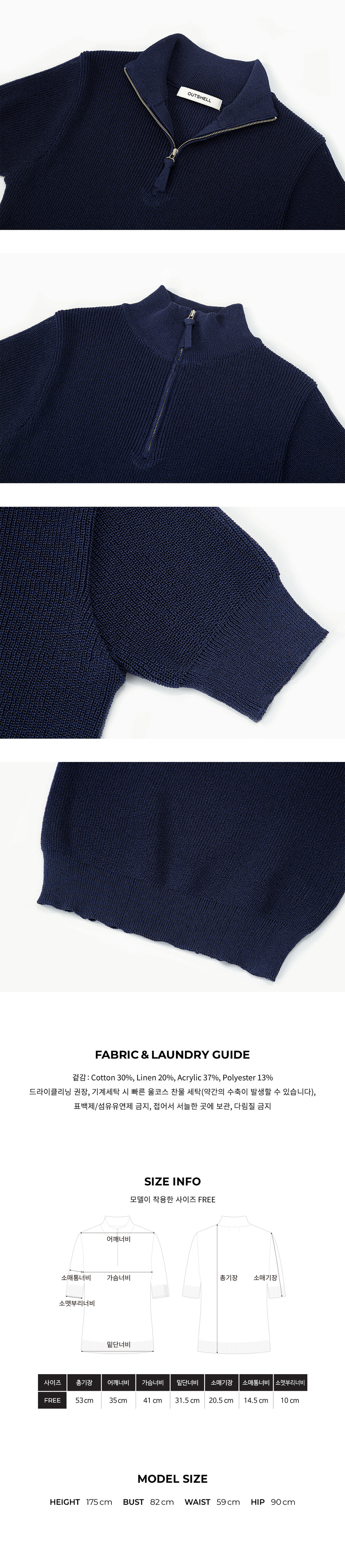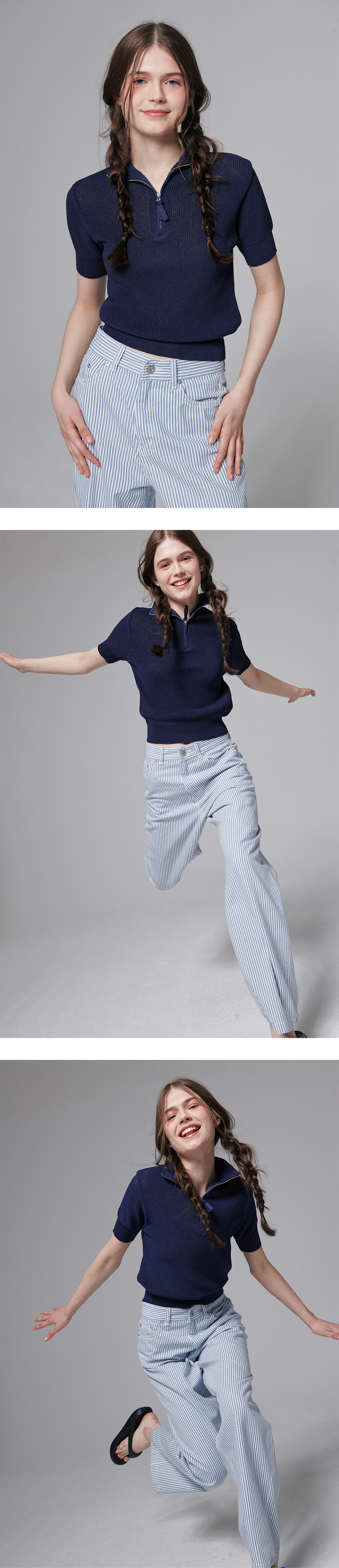 Half zip up knit top - Navy