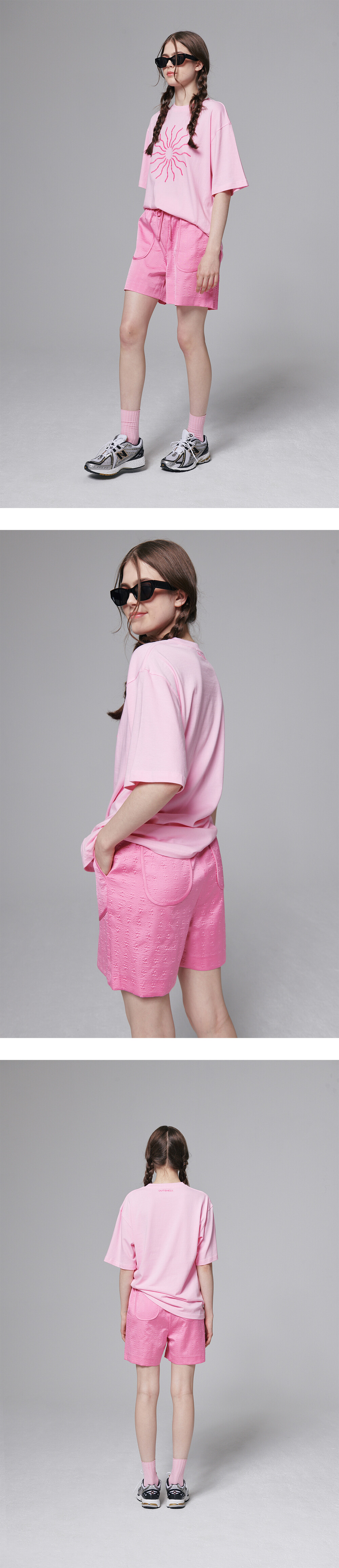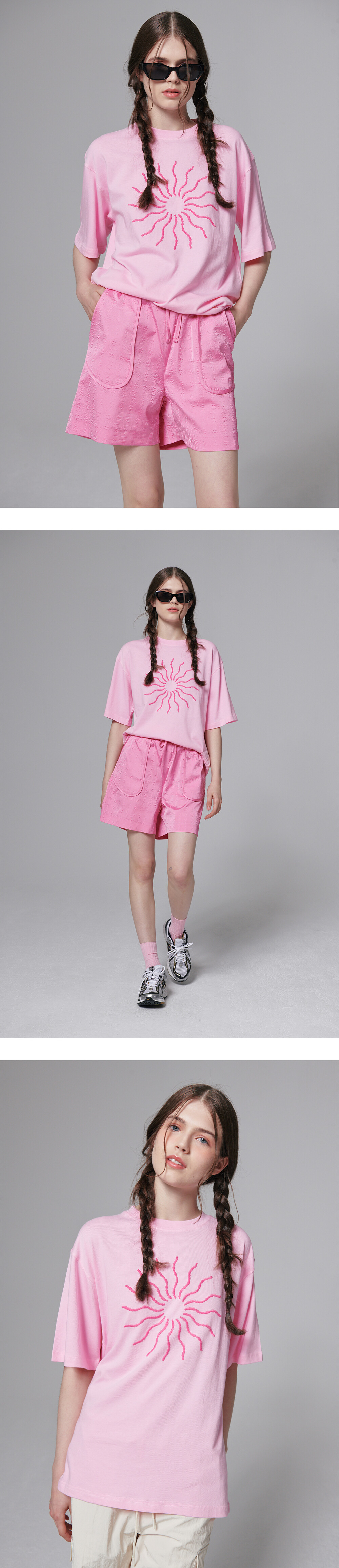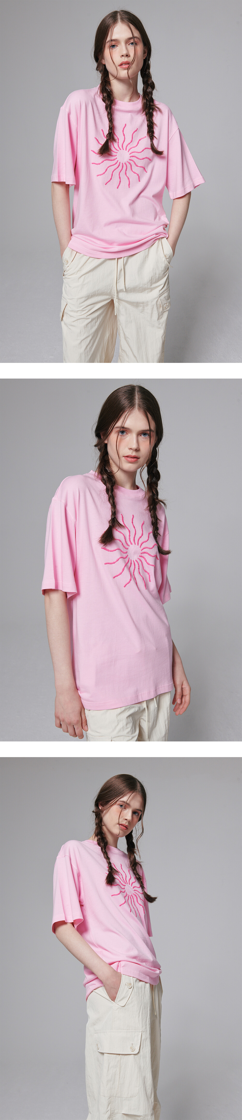 The sun volume embroidered T shirt - Pink