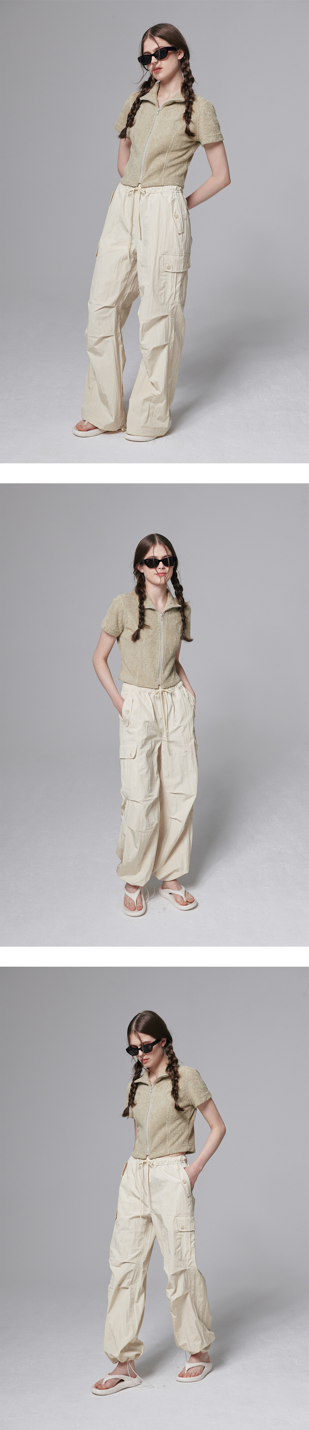 Ripstop wide cargo pants - Light yellow
