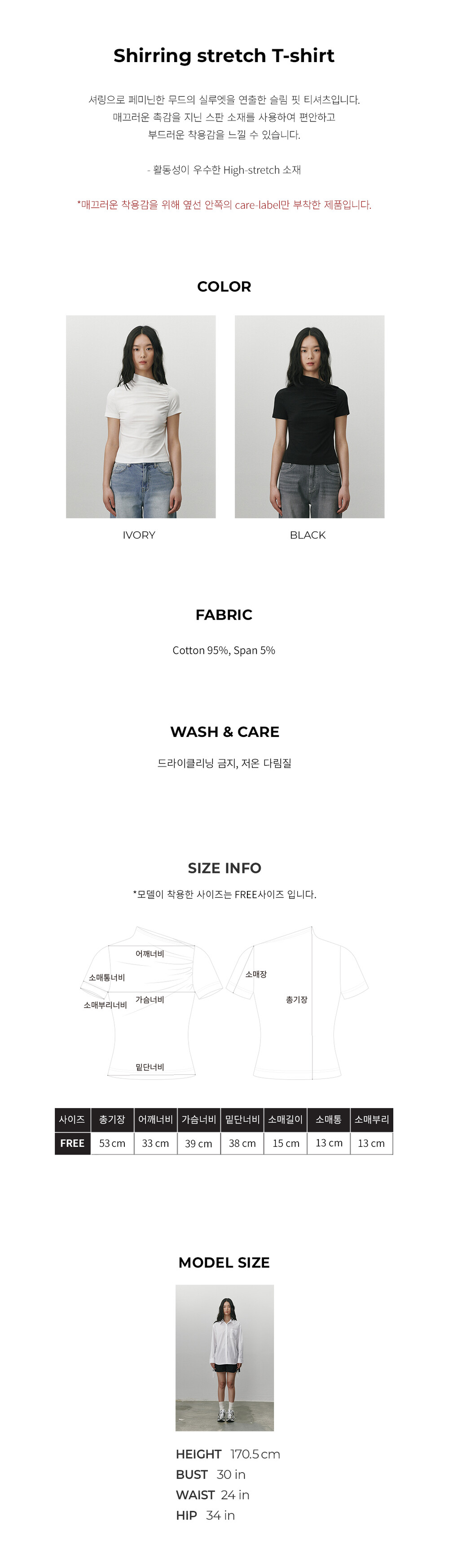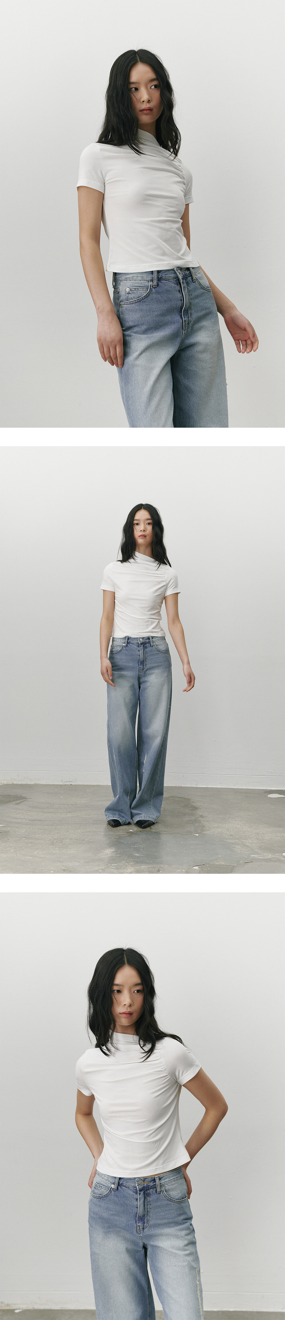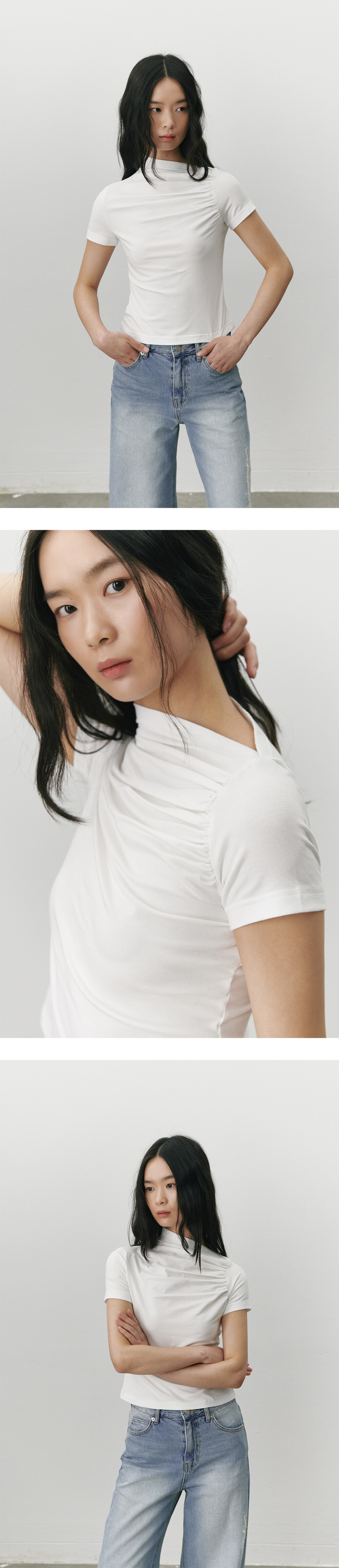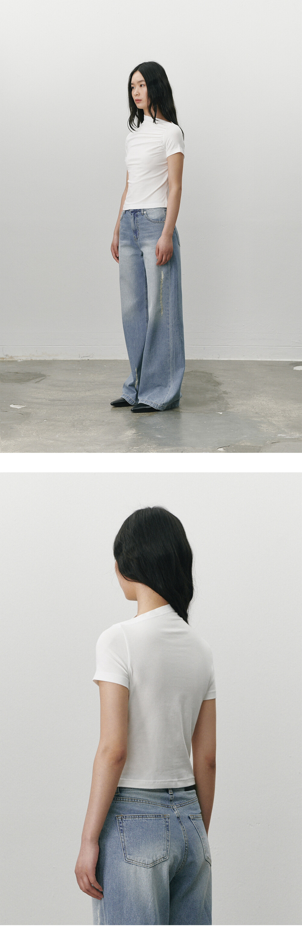 Shirring stretch T shirt - White