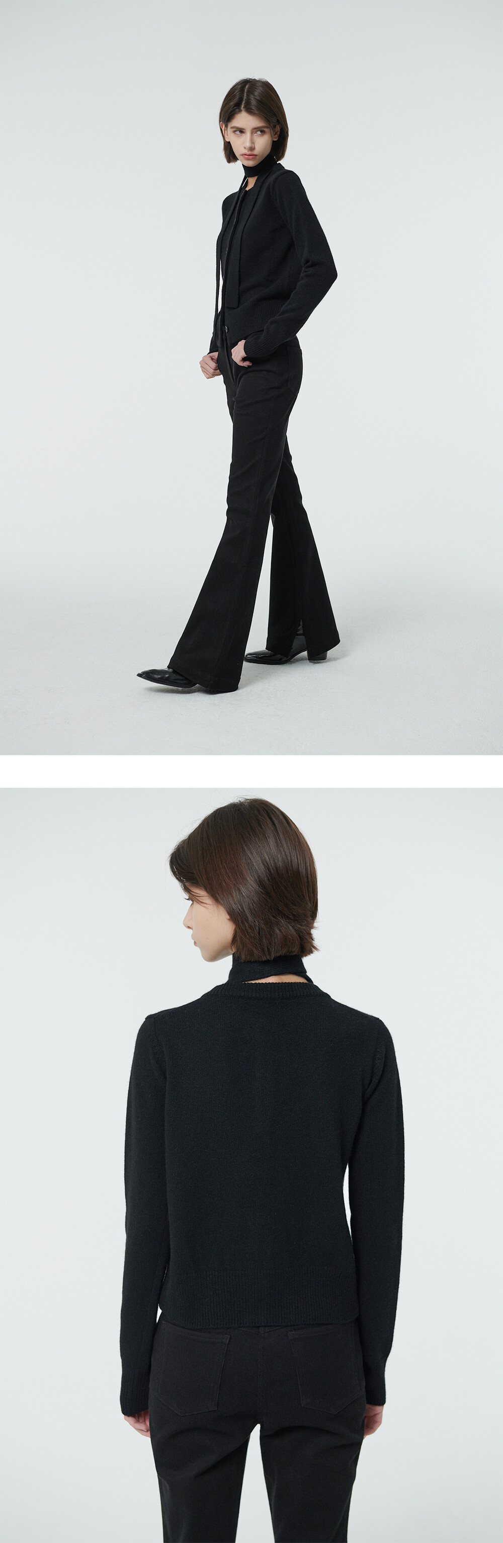 메리노 울 베이스 원사를 사용하여 플레인한 조직감으로 짜낸 니트입니다.