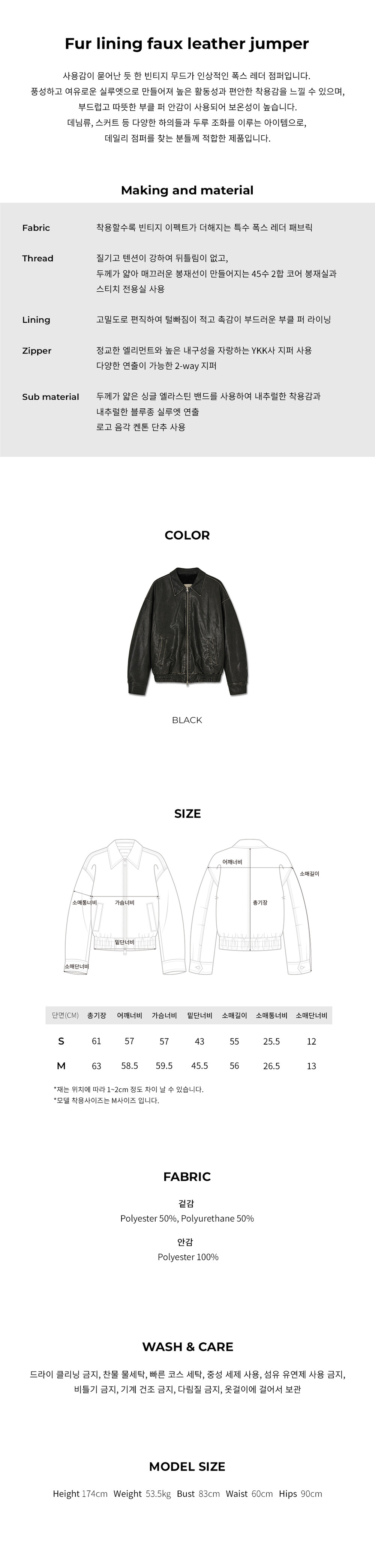 Fur lining faux leather jumper - Black