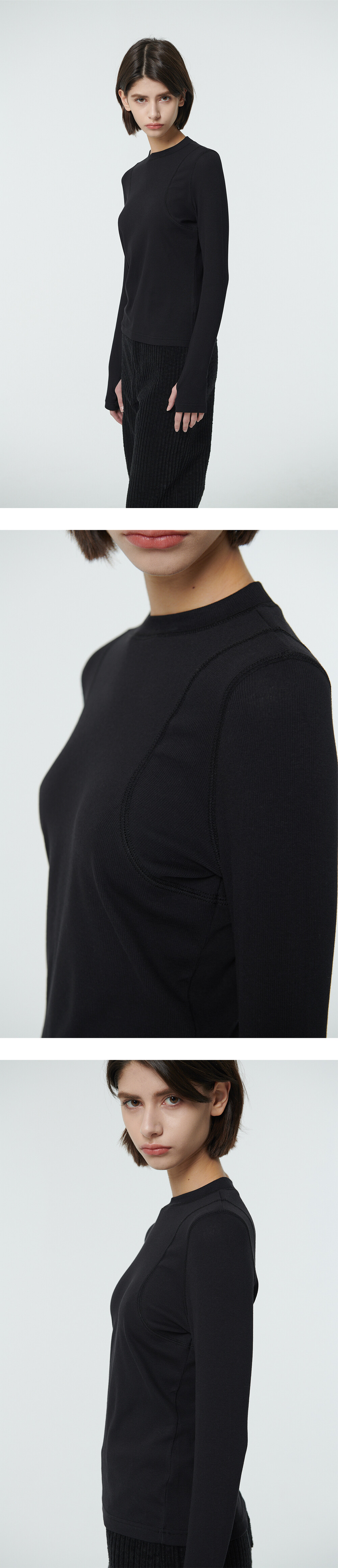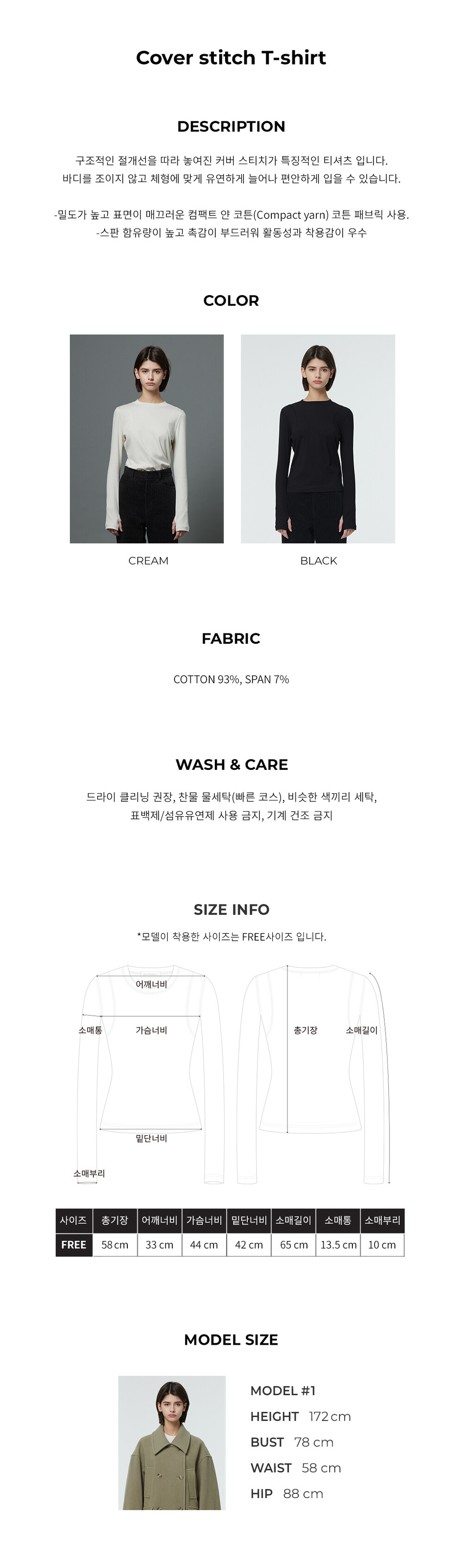 구조적인 절개선을 따라 놓여진 커버 스티치가 특징적인 티셔츠 입니다. 바디를 조이지 않고 체형에 맞게 유연하게 늘어나 편안하게 입을 수 있습니다.