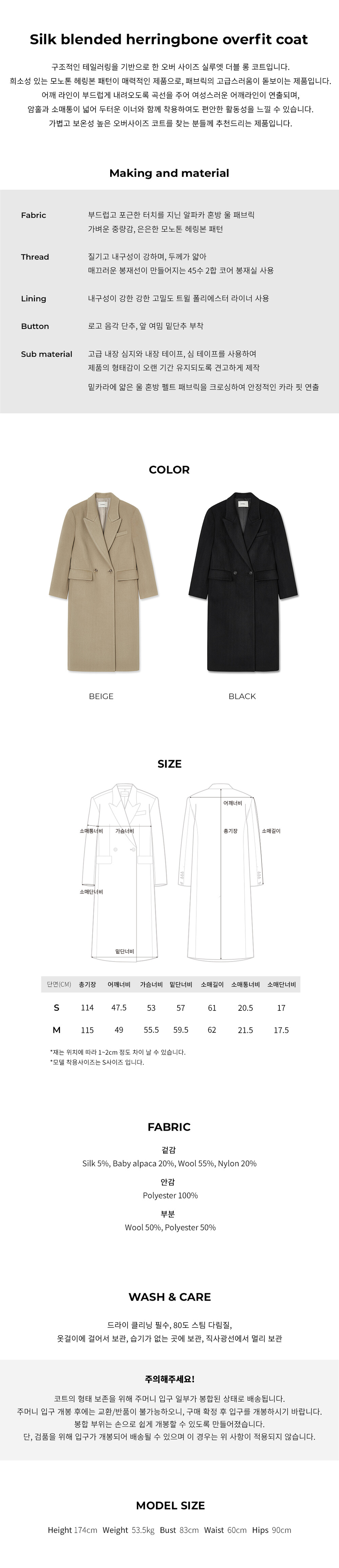 Silk blended herringbone overfit coat - Beige